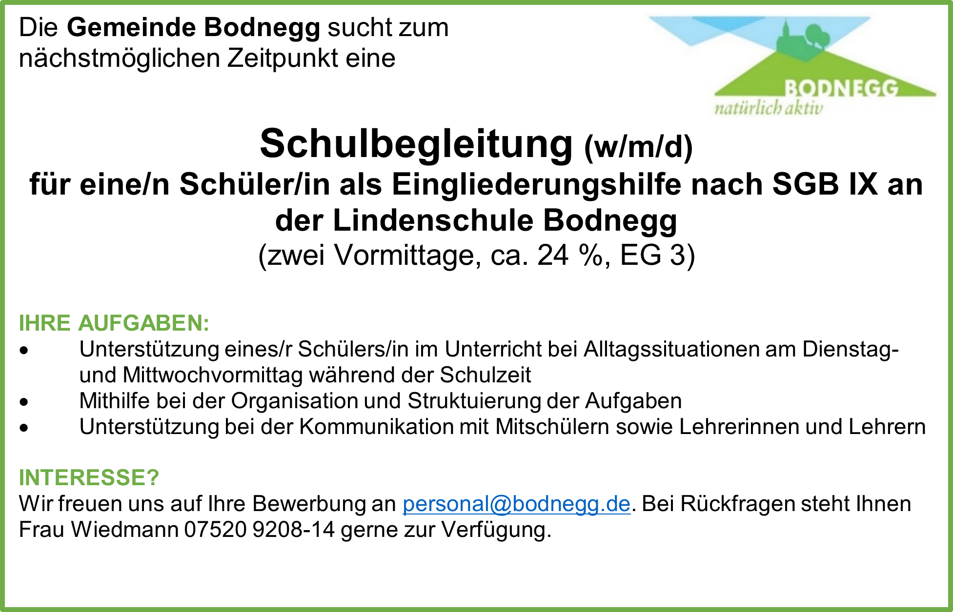 Schulbegleitung (m/w/d) an der Lindenschule Bodnegg
